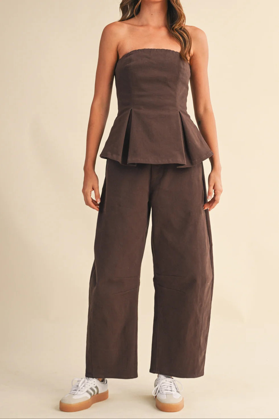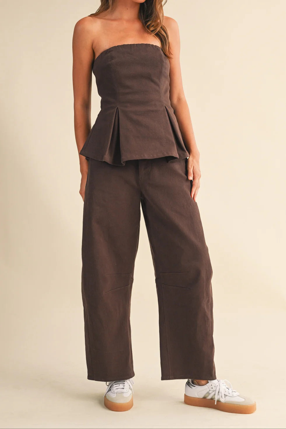STRAPLES TOP AND BARREL PANTS SET